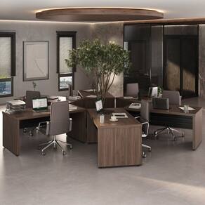 O design espaçoso e ergonômico facilita a organização do espaço e promove uma fluidez operacional otimizada. Perfeito para ambientes que demandam interação constante entre equipes, este conjunto permite configurações versáteis que se adaptam às necessidades específicas de sua empresa, desde reuniões colaborativas até foco individual.