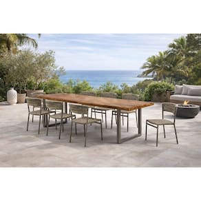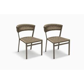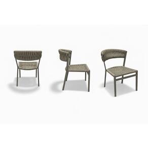 As 08 cadeiras que acompanham o conjunto foram cuidadosamente projetadas para unir conforto e elegância. Fabricadas em alumínio, são leves, resistentes à corrosão e ideais para áreas externas. O assento e o encosto recebem trico náutico, um material nobre, extremamente confortável, de fácil manutenção e próprio para uso ao ar livre, além de agregar um visual contemporâneo e sofisticado ao conjunto.