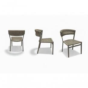 As 08 cadeiras que acompanham o conjunto foram cuidadosamente projetadas para unir conforto e elegância. Fabricadas em alumínio, são leves, resistentes à corrosão e ideais para áreas externas. O assento e o encosto recebem trico náutico, um material nobre, extremamente confortável, de fácil manutenção e próprio para uso ao ar livre, além de agregar um visual contemporâneo e sofisticado ao conjunto.