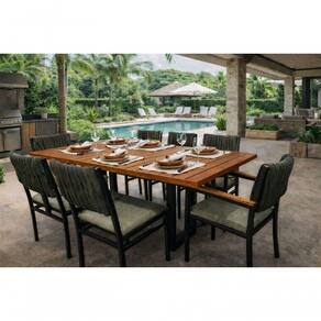 Com design contemporâneo e acabamento elegante, o conjunto combina estrutura metálica robusta com assento e encosto com malha náutica, criando um visual moderno e atemporal. A proposta náutica traz leveza ao ambiente, valorizando espaços como varandas gourmet, áreas de lazer e salas de jantar integradas.