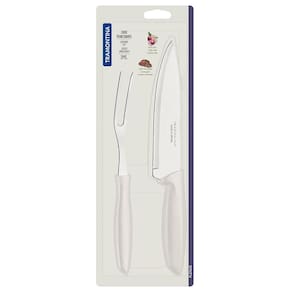 A Faca Chef que compõe esse kit é essencial para diferentes funções em sua cozinha, garantindo mais eficiência em cortar, fatiar e picar os mais variados tipos de alimentos, desde peixe, frango, carnes bovina e suína, até frutas, legumes e verduras. Já o Garfo Trinchante é ideal para auxiliar no preparo do churrasco, carnes assadas no forno, peixes e verduras no geral, sendo um coringa para preparar diferentes tipos de receitas e para auxiliar o momento de servir seus convidados. Ambas as peças são fabricadas em Aço Inoxidável super eficiente para diferentes texturas, garantindo um manuseio preciso e seguro. Os cabos são fabricados em Polipropileno e são confortáveis para encaixar perfeitamente nas mãos, além de serem leves e fáceis de utilizar.
