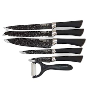 Características Técnicas: - Material: Aço Inox - Revestimento Antiaderente - Cabo Soft Touch com Borracha Texturizada - Tesoura com múltiplas funções: corte, abertura de garrafas, quebra nozes - Cortador de legumes e frutas com lâmina de cerâmica - Itens inclusos: 1 Cutelo de 7 17.8cm , 1 Faca de Carne 8 20cm , 1 Faca para Pão 8 20cm , 1 Faca para vegetais 3 9cm , 1 tesoura de cozinha 13cm , 1 descascador de legumes 15cm , 1 estojo para guardar utensílios