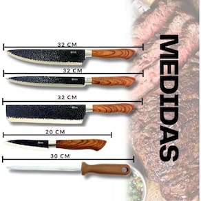 Conjunto facas churrasco afiadas chef talheres premium Descrição do anúncio Transforme seu churrasco em uma experiência gourmet com este kit de facas ideal para os verdadeiros amantes da carne e da boa culinária, o conjunto conta com lâminas afiadas em aço inoxidável, design moderno e acabamento elegante. Seja para uso doméstico ou , este kit é perfeito para churrasqueiros exigentes que buscam precisão e estilo na hora do corte. Além de garantir cortes perfeitos, o kit acompanha acessórios essenciais como cutelo, afiador e amolador, proporcionando maior praticidade e durabilidade para suas facas. Um excelente presente para o dia dos pais ou qualquer ocasião especial Conteúdo da embalagem 1 faca do chef 1 faca para fatiar 1 faca de desossar 1 faca para legumes 1 cutelo 1 afiador ou amolador manual 1 garra de segurar carne 1 maleta elegante para armazenamento Características Lâminas afiadas e resistentes em aço inoxidável Design ergonômico com cabo confortável Visual sofisticado na cor preta com marrom Ideal para cortar carnes, legumes, verduras e muito mais Uso doméstico ou Fácil de limpar e com alta durabilidade Maleta prática para transporte e organização Presente ideal para datas comemorativas como dia dos pais Especificações Material das lâminas: aço inoxidável Material do cabo: polipropileno resistente Cor: preta com marrom Quantidade de peças: 8 Tipo de produto: kit de facas para churrasco Uso: doméstico e Acompanha maleta: sim Tipo de corte: precisão e alta performance Entrega: rápida Marca: Não Informado