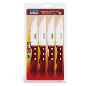 O Conjunto de Facas para Churrasco Jumbo Tramontina com Lâmina em Aço Inox com Cabo Vermelho Polywood 4 Peças é para quem deseja fazer bonito na mesa e levar uma opção de qualidade para apreciar um verdadeiro churrasco. A lâmina das peças são produzidas em aço inox, garantindo sua durabilidade. O cabo de madeira tratada Polywood oferece um design diferenciado, deixando qualquer ocasião ainda mais sofisticada. Além disso, a madeira é resistente à impactos e altas temperaturas. Uma excelente opção da linha Churrasco para quem não abre mão de um excelente produto e da sua beleza.
