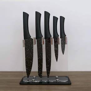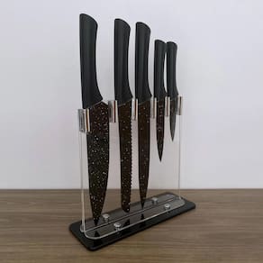Conjunto De Facas com Suporte Gourmet - Preto Inox/Acrílico 6pç - Wincy Conjunto De Facas com Suporte Gourmet - Preto Inox/Acrílico 5pç - Wincy
