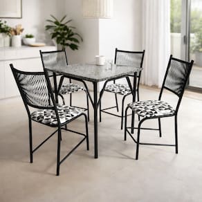 Conforto e praticidade nas cadeiras O conjunto inclui 4 cadeiras com assentos estofados, proporcionando conforto nas refeições. As espumas com densidade D13 oferecem bom suporte e durabilidade, enquanto as sapatas plásticas ajudam a proteger o piso contra arranhões, contribuindo para a preservação do ambiente.