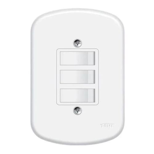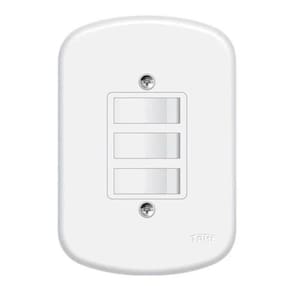 Conjunto Fame Blanc - Interruptor Triplo Simples 10a Código: 0656Cor: BrancoLinha: BlancConjunto com: 3 interruptores simplesAmperagem: 10AComposição: Termoplásticos isolantes, partes condutores em liga de cobre, elementos de em prata e liga cobre (interruptores), parafusos em ferro revestidos eletroliticamente.: 5 anos A imagem do produto é ilustrativa e pode variar de tonalidade e cor de acordo com a configuração de cada objetos que compõem a foto ambientada não acompanham o meramente ilustrativas. Marca: FAME BRASIL