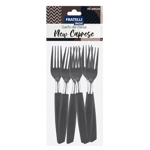 Jogo 6 Garfos de Mesa New Caprese Preto Fratelli Inox