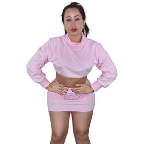 Conjunto Feminino Casaco Blusa + Saia De Moletom Inverno - Rosa - M