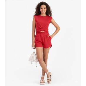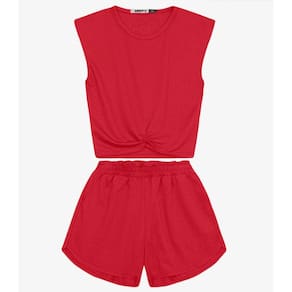 Conjunto feminino juvenil composto por blusa regata moderna com detalhe frontal e shorts com cintura elástica. Feito em tecido leve e confortável, perfeito para dias quentes, passeios, férias e looks casuais. O caimento é soltinho, garantindo mobilidade e estilo. Ideal para quem busca um visual jovem, fresco e moderno.