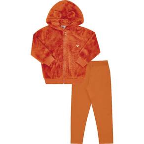 Para ajudar na escolha do look perfeito na hora de sair a Pulla Bulla trouxe esse conjuntinho, composto por um blusão com detalhe super fofinho de orelhinha no capuz, confeccionado em pelo na cor laranja ferrugem, proporcionando muito conforto ao look e para completa uma calça lisa, confeccionada em molecotton na cor laranja ferrugem. Sua garotinha vai amar esse look e aproveitar cada momento do inverno.