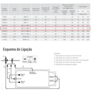 Conjunto filtro e motobomba 3/4cv para piscina até 76 mil litros - nautilus Conjunto filtro e motobomba 3/4cv para piscina até 76 mil litros - nautilus O filtro nautilus para piscina f550p é um filtro de alta qualidade e desempenho, indicado para garantir a limpeza de piscinas de uso residencial de 30.000 a 52.000, gerando qualidade e economia, não oferecendo riscos à saúde. Seu tanque é produzido com polietileno rotomoldado, à prova de corrosão, em uma peça única, sem emendas o que garante alta resistência a tensões residuais. Seu manuseio é simplificado através de válvula seletora multivias em abs com 6 seis posições filtrar, lavar, drenar, recircular, pré-filtrar e fechado . Compatível com a motobomba nautilus série nbf-2 com de cv que garante filtração eficiente e economia de energia. A qualidade de filtração aumenta consideravelmente graças a carga filtrante celpool zeólita . O filtro nautilus para piscina f550p tem 3 três anos de no tanque e conta com assistência técnica completa e a qualidade da marca nautilus. Para piscinas comerciais consulte a ferramenta de dimensionamento ou a norma da abnt 10.339 Características do filtro: Diâmetro: 550mm Peso: 14,2kg Motobomba recomendada: nbf-3 Modelo do filtro: f550p Vazão: 9,5m/h Quantidade de sacos de areia: 5 Quantidade de sacos zeolita: 3 Área filtrante: 0.24m Volume piscina: 40.000 a 57.000 l Dimensões do filtro: Altura: 96cm Largura: 55cm Especificações técnicas da motobomba: Modelo: nbfc-3 Tipo de motor: capacitor permanente Potência: 3/4cv Tensão: 127/220v - monofásica Conexão: entrada para tubulação de 50mm ou 1. 1/2 Rotação: 3500 rpm Grau de proteção: ip21 : 12 meses de fábrica Itens inclusos: 01 motobomba centrífuga para piscina nbfc-3m 3/4cv 110/220v 60hz - nautilus 01 filtro para limpeza de piscina de 53-76 mil litros f550p - nautilus 01 manual de instalação : 1 ano de contra defeitos de fabricação. Atenção: O filtro e a motobomba são equipamentos que devem ser posicionados em local próximo da piscina para diminuir as perdas na tubulação de sucção da bomba. Uma perda elevada pode exigir uma motobomba de maior potência. A bomba deve ser instalada preferencialmente abaixo do nível da água da piscina afogada , podendo ser colocada, por ser auto-escorvante, até 1m acima do nível da água. Marca: Não Informado