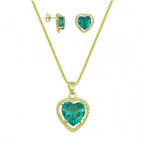 Conjunto Folheado a Ouro com Pingente e Brincos de Coração