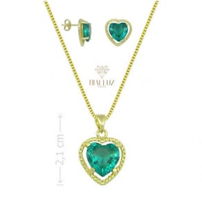 O Conjunto Folheado a Ouro com Pingente e Brincos de Coração da Bialluz é de resistência e durabilidade. A corrente possui 40 cm de comprimento, mas é totalmente regulável podendo ser usada por qualquer pessoa, que emanará ótimas energias em sua vida. É uma maravilhosa opção de presente, com certeza a pessoa que receberá sentirá muita gratidão por ter uma peça tão bela.