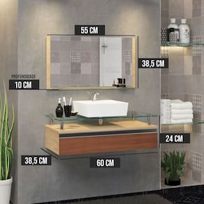 Itens Inclusos: 1 espelho, 1 cuba e 1 gabinete