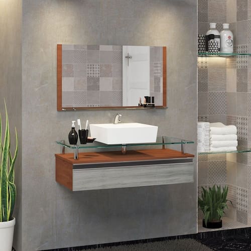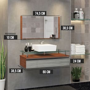 NÃO INCLUI ACESSÓRIOS; COMO SIFÃO, TORNEIRA, VÁLVULA, PARAFUSOS E BUCHAS PARA INSTALAÇÃO E FIXAÇÃO. Acabamento da Cuba: Alto Brilho Acabamento da Porta: Pintura UV Acompanha Cuba: Sim Acompanha Parafusos Para Fixação Na Parede: Não Acompanha Tampo: Sim Ambiente Principal: Banheiro codigo_ean: 7909903708729 Complexidade da Montagem: Baixa: pode ser montado por uma pessoa sozinha Cor: Marrom/Rovere Cor da Cuba: Branco Cor do Produto: Marrom/Rovere Escala de Brilho: Amadeirado Escala de Brilho da Porta: Semi-Brilho Espessura do Espelho: 3 mm Formato do Espelho: Retangular Furação para Cuba e Torneira: Sim Informações Complementares: NÃO enviamos os parafusos e buchas para instalação.Recomendamos parafusos e buchas número 08.A fixação do produto é muito simples Itens Inclusos: 1 espelho, 1 cuba e 1 gabinete Manual de Montagem e Instalação: https://product-hub-prd.madeiramadeira.com.br/910261/documents/d51de24b-9a1d-4103-9d4c-78273a695c0d1981367Manual20Contarini.pdf Material da Cuba: Mármore Sintético Material da Porta: MDF Material do Puxador da Porta: Alumínio Material do Tampo: Vidro Material Principal: MDF Medida da Cuba (C x L x P): 35X35X11 Medida da Espelheira (A x L x P): 39x75x10 Medida do Gabinete (A x L x P): 24x80x39 Necessita Montagem: Não Origem do Produto: Nacional Peso: 15 kg Possui Espelheira: Sim Possui Gabinete: Sim Possui Gavetas: Não Possui iluminação: Não Possui Pés: Não Possui Portas: Sim Possui Rodízio: Não Produto Montado: Não Quantidade de Portas: 01 Recomendações de Uso, Manutenção e Limpeza: A limpeza deve ser feita com pano úmido e liso.Não utilizar materiais ásperos ou jatos de água diretamente sob o produto. Suporte para Toalheiro: Não Tamanho do Espelho (A x L): 39X75 Tipo de Dobradiça/Corrediça da Porta: Alumínio Tipo de Fixação do Espelho: Parafusos Tipo de Madeira Maciça da Porta: Eucalipto Tipo de Porta: Basculante Tipo de Puxador da Porta: Embutido Marca: Contarini