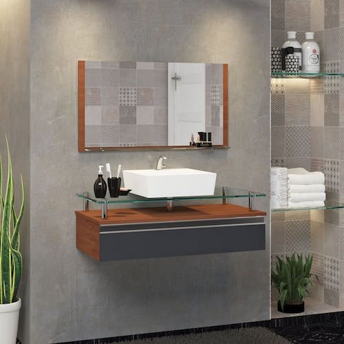 NÃO INCLUI ACESSÓRIOS; COMO SIFÃO, TORNEIRA, VÁLVULA, PARAFUSOS E BUCHAS PARA INSTALAÇÃO E FIXAÇÃO. Acabamento da Cuba: Alto Brilho Acabamento da Porta: Pintura UV Acompanha Cuba: Sim Acompanha Parafusos Para Fixação Na Parede: Não Acompanha Tampo: Sim Ambiente Principal: Banheiro codigo_ean: 7909903708873 Complexidade da Montagem: Baixa: pode ser montado por uma pessoa sozinha Cor: Marrom/Titanium Cor da Cuba: Branco Cor do Produto: Marrom/Titanium Escala de Brilho: Amadeirado Escala de Brilho da Porta: Semi-Brilho Espessura do Espelho: 3 mm Formato do Espelho: Retangular Furação para Cuba e Torneira: Sim Informações Complementares: NÃO enviamos os parafusos e buchas para instalação.Recomendamos parafusos e buchas número 08.A fixação do produto é muito simples Itens Inclusos: 1 espelho, 1 cuba e 1 gabinete Manual de Montagem e Instalação: https://product-hub-prd.madeiramadeira.com.br/910277/documents/d065aa2e-a911-44b5-b6bc-f66263a7c9411981344Manual20Contarini.pdf Material da Cuba: Mármore Sintético Material da Porta: MDF Material do Puxador da Porta: Alumínio Material do Tampo: Vidro Material Principal: MDF Medida da Cuba (C x L x P): 35X35X11 Medida da Espelheira (A x L x P): 39x75x10 Medida do Gabinete (A x L x P): 24x80x39 Necessita Montagem: Não Origem do Produto: Nacional Peso: 15 kg Possui Espelheira: Sim Possui Gabinete: Sim Possui Gavetas: Não Possui iluminação: Não Possui Pés: Não Possui Portas: Sim Possui Rodízio: Não Produto Montado: Não Quantidade de Portas: 01 Recomendações de Uso, Manutenção e Limpeza: A limpeza deve ser feita com pano úmido e liso.Não utilizar materiais ásperos ou jatos de água diretamente sob o produto. Suporte para Toalheiro: Não Tamanho do Espelho (A x L): 39X75 Tipo de Dobradiça/Corrediça da Porta: Alumínio Tipo de Fixação do Espelho: Parafusos Tipo de Madeira Maciça da Porta: Eucalipto Tipo de Porta: Basculante Tipo de Puxador da Porta: Embutido Marca: Contarini