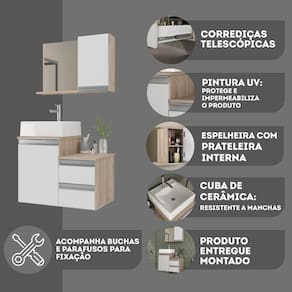 Acompanha : Gabinete + Cuba Elevada + Espelheira com espelhoModelo moderno, com puxador de alumínio tipo perfil. (igual móveis sob medida)