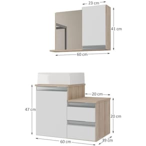 Medidas gabinete: 60cm x 40cm x 47 (comp. / prof. / altura)Medidas da pia sobrepor : 34x34x11Medidas Espelheira : 60cm x 40cm x 14cm (comp. / altura / prof)