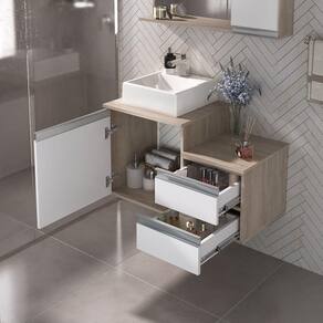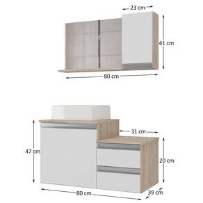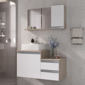 Conjunto Gabinete Banheiro Cross 80 (gabinete+espelheira+cuba) Madeirado Branco - Blush