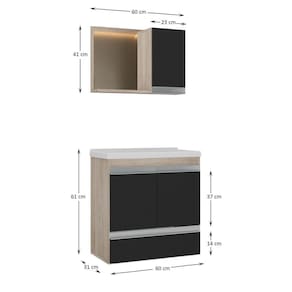 Medidas gabinete: 60cm x 31cm x 61cm (larg. x prof. x alt.)Medidas espelheira: 60cm x 41cm x 13cm (larg. x alt. x comp.)Medidas pia inteira: 60cm x 31cm (larg. x prof.)
