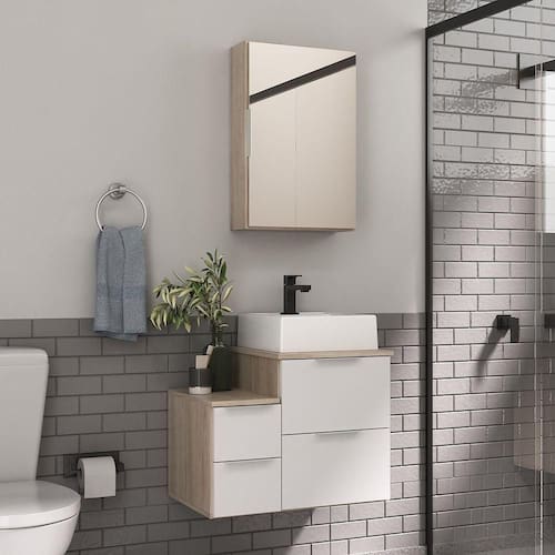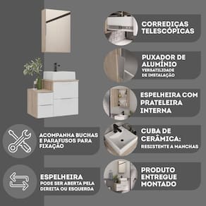 Acompanha : Gabinete + Cuba Elevada + Espelheira com espelhoModelo moderno, com puxador de alumínio de encaixe