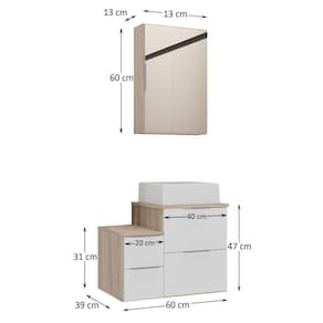 Medidas gabinete: 60cm x 40cm x 47 (comp. / prof. / altura)Medidas da pia sobrepor : 34x34x11Medidas Espelheira : 60cm x 40cm x 14cm (comp. / altura / prof)