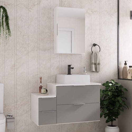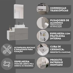 Acompanha : Gabinete + Cuba Elevada + Espelheira com espelhoModelo moderno, com puxador de alumínio de encaixe