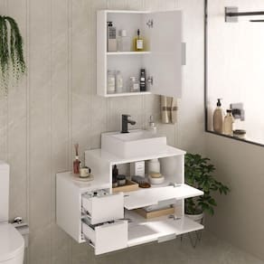 Acompanha : Gabinete + Cuba Elevada + Espelheira com espelhoModelo moderno, com puxador de alumínio de encaixe