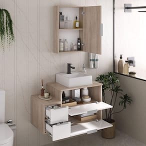 Acompanha : Gabinete + Cuba Elevada + Espelheira com espelhoModelo moderno, com puxador de alumínio de encaixe