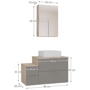 Medidas gabinete: 80cm x 40cm x 47 (comp. / prof. / altura)Medidas da pia sobrepor : 34x34x11Medidas Espelheira : 60cm x 40cm x 14cm (comp. / altura / prof)