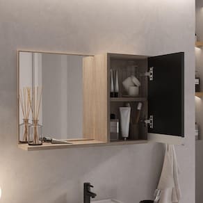 -Espelheira tem 1 porta e espelho(tem prateleira dividindo altura dentro da porta)