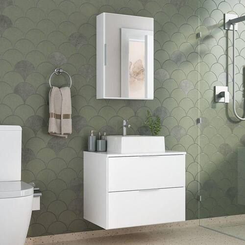 DIFERENCIAIS: Modelo bem versátil, pois as portas basculantes do gabinete permitem instalação em encanamentos vindos da parede ou do chão.Espelheira pode ter abertura da porta de ambos os lados. E só escolher a posição (porta abrindo para direita ou esquerda) na hora de fixar na parede.Os puxadores são únicas peças que vão soltas para fixação, pode-se escolher usá-los em diferentes posições da porta. Na foto anuncio estão centralizados. Mas pode deixar mais para direta ou esquerda. Dependendo da posição do gabinete na parede, pode escolher a melhor posição para atender na praticidade e design do mesmo.