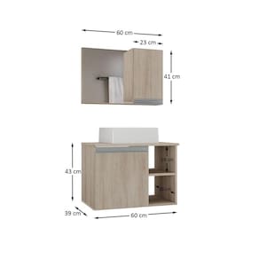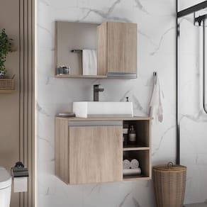 Conjunto Gabinete Banheiro Virtus 60cm - Gabinete + Cuba + Espelheira Madeirado Inteiro
