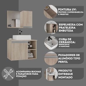 Acompanha : Gabinete + Cuba Elevada + Espelheira com espelho