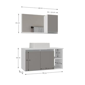 Conjunto Gabinete Banheiro Virtus 80cm - Gabinete + Cuba + Espelheira Branco Cinza