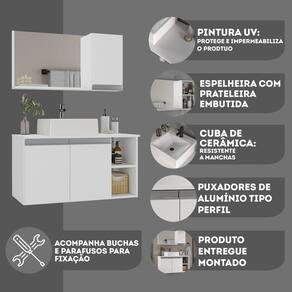 Acompanha : Gabinete + Cuba Elevada + Espelheira com espelho