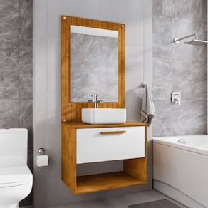 O Conjunto para Banheiro Orion Naturalle/Branco combina o design moderno e a funcionalidade. Seu acabamento branco e o estilo clean trazem leveza ao ambiente, enquanto a espelheira e o gabinete proporcionam a organização e praticidade que você precisa em seu banheiro, sem abrir mão do charme.