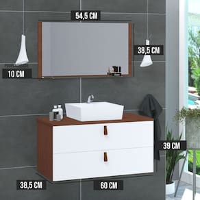 Itens Inclusos: 1 Espelho, 1 Cuba e 1 Gabinete