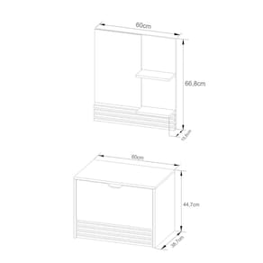 O Kit para Banheiro é a escolha ideal para dar um toque de elegância e organização ao seu espaço. Com um design contemporâneo, ele transforma o ambiente em um local mais convidativo e prático. Fabricado com materiais de alta qualidade, o kit oferece durabilidade e um visual sofisticado, tornando seu banheiro ainda mais funcional e bonito. CARACTERÍSTICAS TÉCNICAS: - Produzida em MDP de 15 mm - Acabamento UV na cor Amêndoa e Mármore Branco - Acompanha Espelho - Porta Basculante com Articulador e Dobradiças Metálicas - Gaveta com Corrediças Metálicas - Puxador tipo Cava - Balcão Suspenso *NÃO Acompanha Cuba *Kit Composto por Gabinete Suspenso (3613) e Espelheira (3614) INFORMAÇÕES TÉCNICAS: 3613: Alt. 44,7 cm x Larg. 60 cm x Prof. 38,7 cm x P. 12,65 kg 3614: Alt. 44,7 cm x Larg. 60 cm x Prof. 38,7 cm x P. 12,65 kg INFORMAÇÕES ADICIONAIS: - ATENÇÃO: Não trabalhamos e não nos responsabilizamos pela montagem do móvel. Antes da montagem conferir se o produto está de acordo com o que comprou, produto montado e danificado pela montagem não será aceito troca. Montagem e instalação por conta do comprador. - As imagens ambientadas são meramente ilustrativas e podem apresentar itens que não compõe o produto. As cores do produto podem variar de acordo com o monitor, a iluminação do ambiente ou sua percepção visual. - Limpeza: Deve ser feita com pano macio e seco ou levemente umedecido com água e sabão neutro. Não devem ser utilizados abrasivos como palha de aço e objetos cortantes. -Garantia para defeitos de fabricação conforme Código de Defesa do Consumidor.