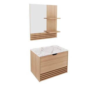 O Kit para Banheiro é a escolha ideal para dar um toque de elegância e organização ao seu espaço. Com um design contemporâneo, ele transforma o ambiente em um local mais convidativo e prático. Fabricado com materiais de alta qualidade, o kit oferece durabilidade e um visual sofisticado, tornando seu banheiro ainda mais funcional e bonito. CARACTERÍSTICAS TÉCNICAS: - Produzida em MDP de 15 mm - Acabamento UV na cor Amêndoa e Mármore Branco - Acompanha Espelho - Porta Basculante com Articulador e Dobradiças Metálicas - Gaveta com Corrediças Metálicas - Puxador tipo Cava - Balcão Suspenso *NÃO Acompanha Cuba *Kit Composto por Gabinete Suspenso (3613) e Espelheira (3614) INFORMAÇÕES TÉCNICAS: 3613: Alt. 44,7 cm x Larg. 60 cm x Prof. 38,7 cm x P. 12,65 kg 3614: Alt. 44,7 cm x Larg. 60 cm x Prof. 38,7 cm x P. 12,65 kg INFORMAÇÕES ADICIONAIS: - ATENÇÃO: Não trabalhamos e não nos responsabilizamos pela montagem do móvel. Antes da montagem conferir se o produto está de acordo com o que comprou, produto montado e danificado pela montagem não será aceito troca. Montagem e instalação por conta do comprador. - As imagens ambientadas são meramente ilustrativas e podem apresentar itens que não compõe o produto. As cores do produto podem variar de acordo com o monitor, a iluminação do ambiente ou sua percepção visual. - Limpeza: Deve ser feita com pano macio e seco ou levemente umedecido com água e sabão neutro. Não devem ser utilizados abrasivos como palha de aço e objetos cortantes. -Garantia para defeitos de fabricação conforme Código de Defesa do Consumidor.