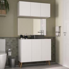 O Conjunto Gabinete de Banheiro e Armário Aéreo 3 Portas Retrô Multimóveis MP5055 é a solução perfeita para quem busca organização e elegância no banheiro. Fabricado em MDP (15mm) com acabamento acetinado (cerca de 20% de brilho), garante durabilidade e resistência. Composto por um gabinete e um armário aéreo com 3 portas e prateleiras, oferece amplo espaço interno para guardar todos os itens de higiene pessoal, mantendo o ambiente organizado. Seu design clean proporciona um visual moderno e estiloso ao kit, combinando perfeitamente com qualquer tipo de decoração. Além disso, o gabinete possui pés retrô em polipropileno que oferecem estabilidade e um charme vintage. Conteúdo da Embalagem: 1 (um) Gabinete 1 (um) Armário Aéreo Manual de Montagem Kit Ferragem