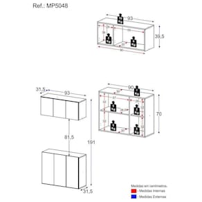 Dimensões do produto montado: Armário Aéreo - Altura: 39,5cm | Largura: 93cm | Profundidade: 31,5cm Gabinete - Altura: 70cm | Largura: 93cm | Profundidade: 31,5cm *Você pode consultar as medidas detalhadas na imagem técnica do produto.