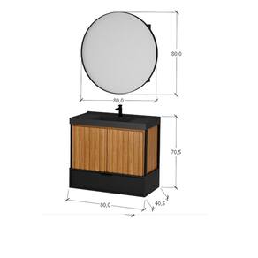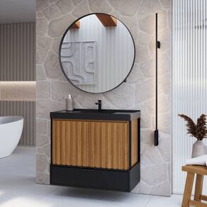 A modernidade desse conjunto é atrelada aos contrastes das cores da madeira, de seu design ripado e das cores sólidas. O gabinete é uma peça imponente, cheia de detalhes, que une a o que há de melhor na decoração para agregar ao seu banheiro. A espelheira conta com armário embutido e prateleiras que ajudam a organizar os itens de higiene pessoal. Acabamento da Cuba: Acetinado Acabamento da Gaveta: Pintura UV Fosca Acabamento da Porta: Pintura UV Acabamento da Prateleira: Pintura UV Acompanha Cuba: Sim Acompanha Manual de Instalação: Sim Acompanha Parafusos Para Fixação Na Parede: Não Acompanha Tampo: Sim Altura do Espelho: 80 cm Ambiente Principal: Banheiro codigo_ean: 7909903814222 Comprimento da Prateleira: 70 cm Cor: Freijó/Preto Cor do Produto: Freijó/Preto Cor Interna: Preto Escala de Brilho: Fosco Escala de Brilho da Gaveta: Fosco Escala de Brilho da Porta: Fosco Escala de Brilho da Prateleira: Fosco Espessura do Espelho: 3 mm Formato do Espelho: Redondo Furação para Cuba e Torneira: Sim Gaveta com Chave: Não Itens Inclusos: 01 Manual de Instalação, 01 gabinete, 01 espelheira, 01 tampo de mármore sintético com cuba embutida Largura do Espelho: 80 cm Linha ou Coleção: Ana Manual de Montagem e Instalação: https://product-hub-prd.madeiramadeira.com.br/923599/documents/29329917-18b0-42f0-9b1a-95593906227c2148598371917212270770944.pdf Material da Cuba: Mármore Sintético Material da Gaveta: MDF Material da Porta: MDF Material da Prateleira: MDF Material do Puxador da Gaveta: ABS Material do Tampo: Mármore Sintético Material Principal: MDF Medida da Cuba (C x L x P): 8x80x40,5 Medida da Espelheira (A x L x P): 80x80x15 Medida do Gabinete (A x L x P): 70,5x80x40,5 Necessita Montagem: Não Origem do Produto: Nacional Peso: 42 kg Peso Máximo por Gaveta: 15 kg Peso Máximo por Prateleira: 10 kg Possui Espelheira: Sim Possui Gabinete: Sim Possui iluminação: Não Possui Nichos: Não Possui Pés: Não Possui Porta de Vidro: Não Possui Portas: Sim Possui Recorte No Tampo Para Cuba: Não Possui Recorte No Tampo Para Misturador: Sim Possui Rodízio: Não Possui Sifão: Não Possui Tampo: Sim Produto Montado: Sim Quantidade de Portas: 02 Quantidade de Prateleiras: 01 Recomendações de Uso, Manutenção e Limpeza: Utilize flanela seca ou pano macio, levemente umedecido com água. Evite contato com produtos químicos e abrasivos (solventes, thinner, acetona etc) e não utilize nenhum tipo de esponja de aço. Suporta Até (kg): 40 kg Suporte para Toalheiro: Não Tamanho do Espelho (A x L): 80x80 Tipo de Corrediça da Gaveta: Metálica Telescópica Tipo de Dobradiça/Corrediça da Porta: Com Amortecedor Tipo de Fixação do Espelho: Silicone Tipo de Gaveta: Externa Tipo de Porta: Bater Tipo de Puxador da Gaveta: Externo Tipo de Puxador da Porta: Embutido