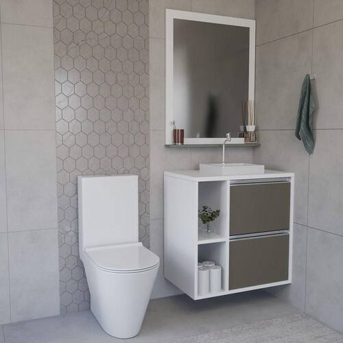 Conjunto Gabinete E Espelhiera Plena Compact 100cm Bronze Conjunto Gabinete e Espelhiera Plena Compact 100cm Bronze - Sofisticação também cabe em espaços menores! O Plena Compact 100 traz toda a qualidade premium da linha Plena em um formato mais compacto. O conjunto de sobrepor inclui um balcão elegante (70cm alt x 100cm larg x 45cm prof) e uma espelheira charmosa (90cm alt x 100cm larg, profundidade N/A). Ideal para quem não abre mão do luxo e da qualidade, mesmo com menos espaço.