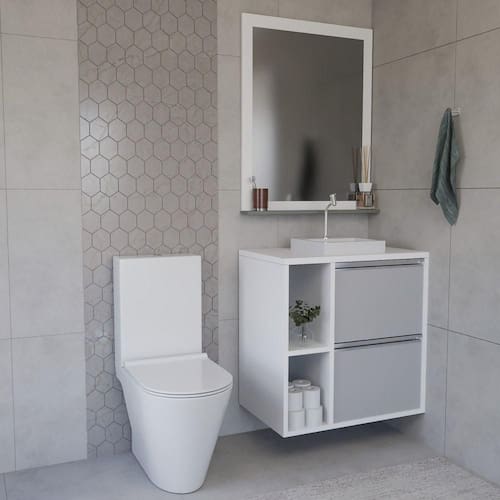 Conjunto Gabinete E Espelhiera Plena Compact 60cm Cinza Conjunto Gabinete e Espelhiera Plena Compact 60cm Cinza - Sofisticação também cabe em espaços menores! O Plena Compact 60 traz toda a qualidade premium da linha Plena em um formato mais compacto. O conjunto de sobrepor inclui um balcão elegante (70cm alt x 60cm larg x 45cm prof) e uma espelheira charmosa (90cm alt x 60cm larg, profundidade N/A). Ideal para quem não abre mão do luxo e da qualidade, mesmo com menos espaço.