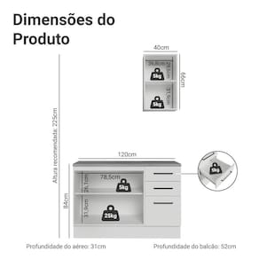 - 31cm de profundidade nos aéreos e 52cm no balcão