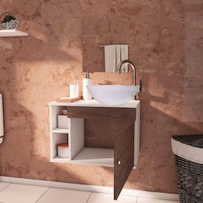 **GABINETE ENTREGUE DESMONTADO** Acabamento da Porta: BP Acabamento da Prateleira: BP Ambiente Principal: Banheiro codigo_ean: 7900288143280 Complexidade da Montagem: Baixa: pode ser montado por uma pessoa sozinha Cor: Marrom/Branco Cor do Produto: Marrom/Branco Cor Interna: Branco Escala de Brilho: Brilhante Escala de Brilho da Porta: Semi-Brilho Escala de Brilho da Prateleira: Semi-Brilho Itens Inclusos: 1 Gabinete + 1 Cuba + 1 Kit de Montagem Linha ou Coleção: Itália Manual de Montagem e Instalação: https://product-hub-prd.madeiramadeira.com.br/925854/documents/c1d1bfad-b572-4771-a0af-b229ed431c0e2166098588117217680353387.pdf Marca: Brovalia Material da Porta: MDP Material da Prateleira: MDP Material Principal: MDP Necessita Montagem: Sim Origem do Produto: Nacional Peso: 11 kg Peso Máximo por Prateleira: 5 kg Possui Espelho: Não Possui Pés: Suspenso Possui Portas: 01 Possui Prateleiras: 02 Recomendações de Uso, Manutenção e Limpeza: Utilizar pano levemente úmido para limpeza e manutenção do produto. Sapatas Niveladoras: Não Sistema de Montagem: Manual Suporta Até (kg): 30 kg Tipo de Dobradiça/Corrediça da Porta: Aço Tipo de Porta: Bater Tipo de Puxador da Porta: Externo Marca: Brovalia