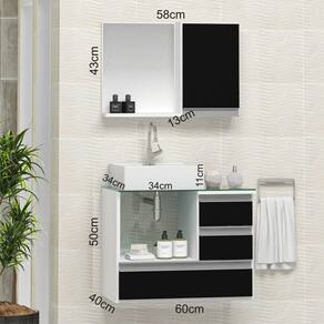 Modelo moderno, com puxador de alumínio tipo perfil. (móveis iguais sob medida)Medidas gabinete: 60cm x 40cm x 50 (comp. / prof. / altura)Medidas da pia sobrepor : 34x34x11Medidas Espelheira : 60cm x 40cm x 14cm (comp. / altura / prof)Medida Tampo Vidro: 60cm x 40cm com 6mm de espessura (vidro temperado)