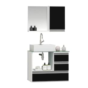 KIT BANHEIRO COMPLETO 60CM -GABINETE + CUBA + ESPELHEIRA + TAMPO VIDRO INCOLOR